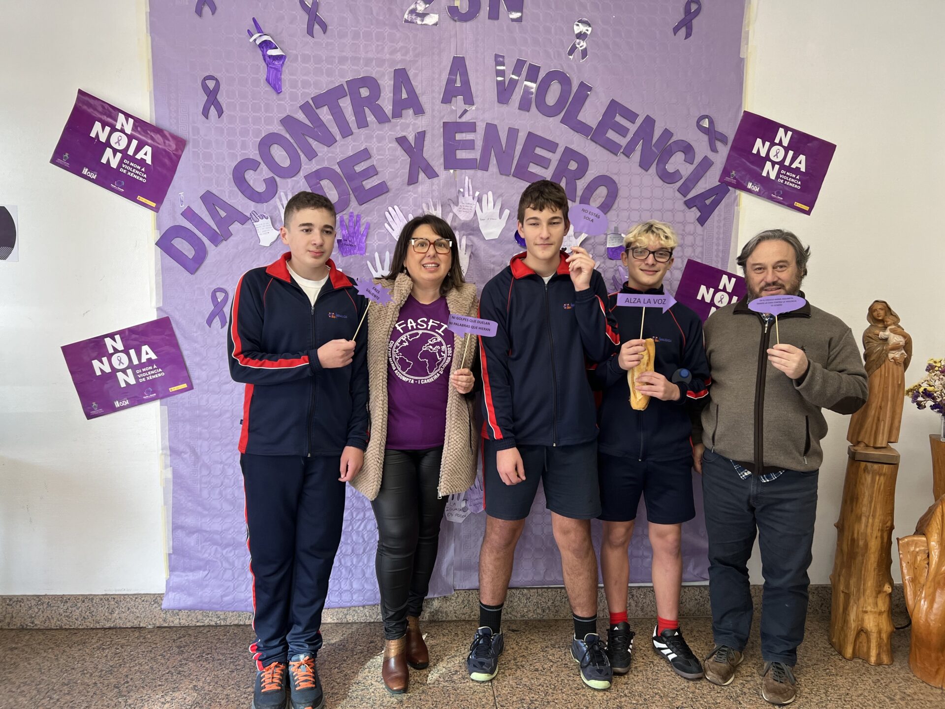 Este acto simbólico reflicte o traballo diario do centro por fomentar a igualdade real entre homes e mulleres, así como por educar ao noso alumnado na defensa dos dereitos humanos e na construcción dunha sociedade máis xusta e libre de violencia.