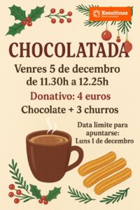 Chocolatada de Alcor Venres 5 de Decembro + Añadir Google Calendar + exportación iCal / Outlook Fecha Dic 05 2025 ¡Caducado! Hora 11:30 am - 12:30 pm Compartir este evento